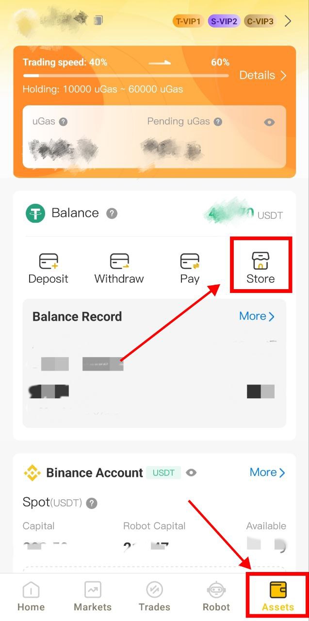 **Step 1:** Open and Sign in to the uTrading App, First click on **\[**<mark style="color:blue;">**Assets**</mark>**]** page, and then click on **\[**<mark style="color:blue;">**uGas**</mark>**]**. As follow: